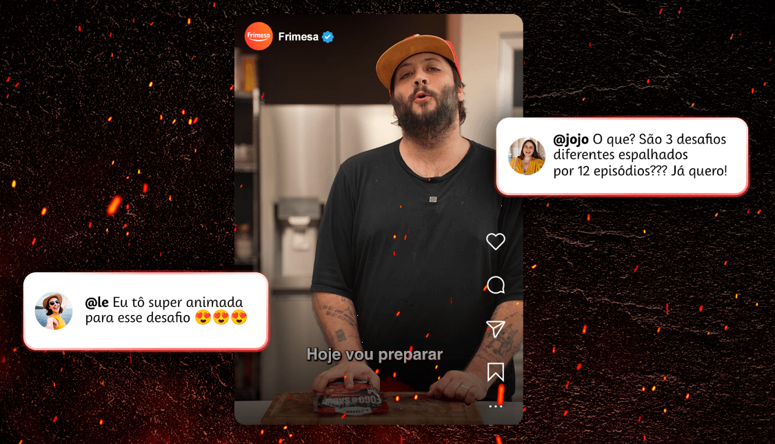 A Frimesa precisava lançar sua nova linha “Fogo & Sabor” com um impacto que fosse além da prateleira. O desafio era criar uma campanha digital que capturasse a atenção do público, misturando gastronomia com entretenimento de uma forma que gerasse conversa e desejo genuíno pelo produto.